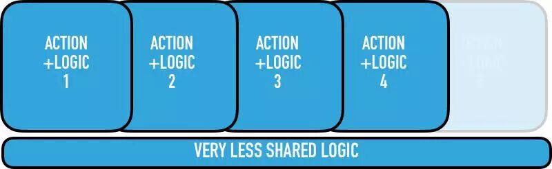 我們會盡可能的進(jìn)行歸類,并且生成其中的邏輯。正是出于這個原因,MVC才會最終變成Fat Model或是Fat Controller。但是我們剛剛提到了,商業(yè)要求只會分岔,不會交匯。因此,我們的反應(yīng)應(yīng)該是這樣的: